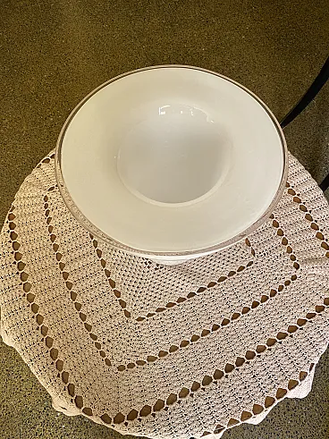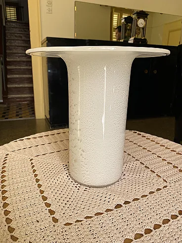 Vaso in vetro attribuito a Cassina, bianco e argento, anni 2000