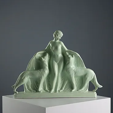 Donna con Due Cani, scultura di Louis Fontinelle, '900