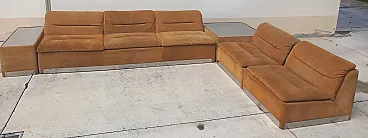 Questo set da soggiorno della metà del secolo è un esempio straordinario del design italiano degli anni '70, una dichiarazione rara e senza tempo per qualsiasi collezionista o interior designer esigenti.