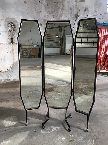 Specchio da toeletta trittico moderno Mid-Century, italiano, anni '70
