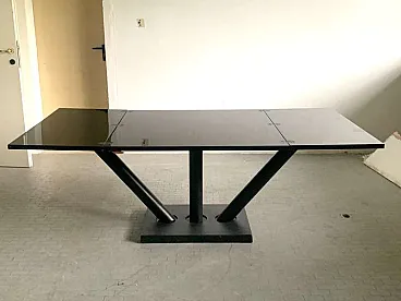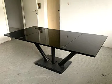 Tavolo Zanotta laccato nero in ghisa e betulla, anni '80