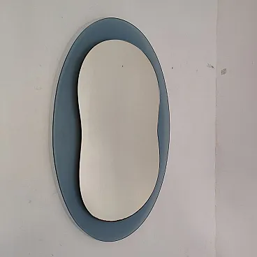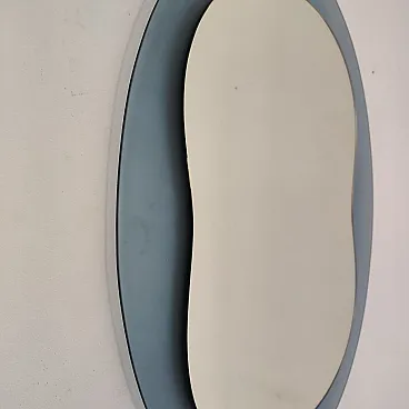 Elegante specchio da parete ovale italiano degli anni ’70, realizzato nello stile di Veca, celebre per le sue linee fluide e l’uso sofisticato del vetro.