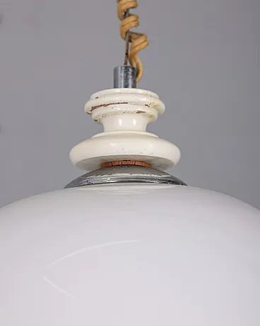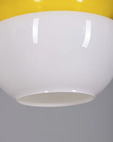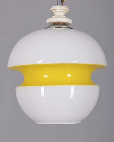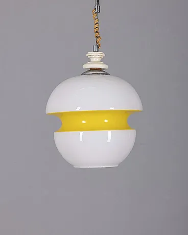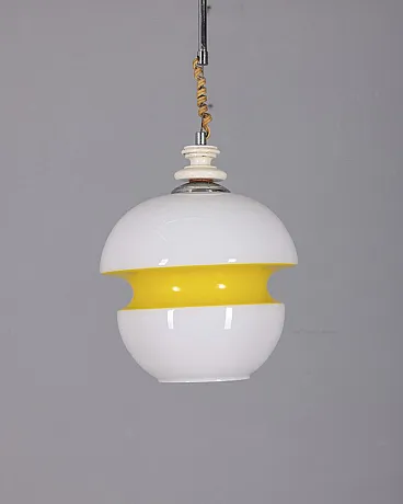 Lampada a sospensione in vetro bianco e giallo, anni '70