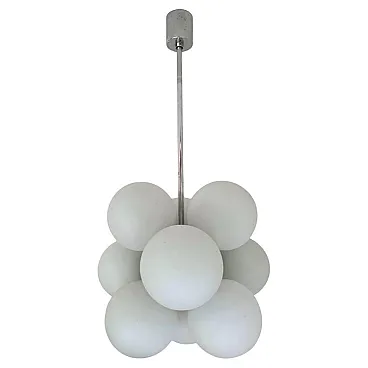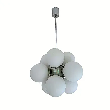 Lampadario Space Age Sputnik con 8 globi di vetro degli anni '60
