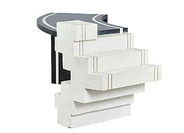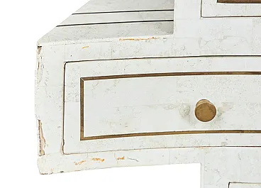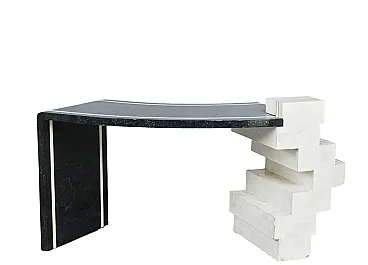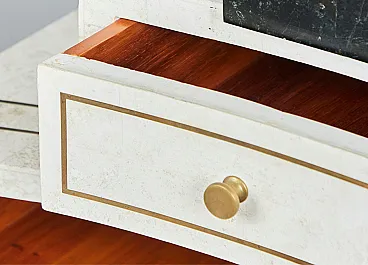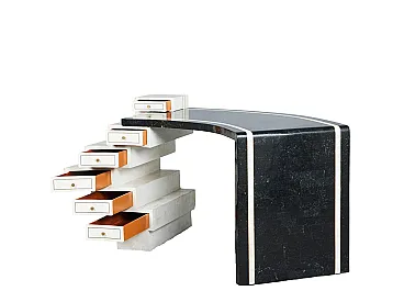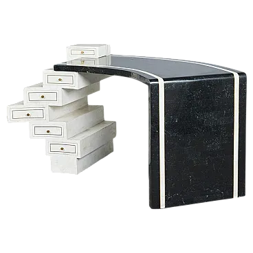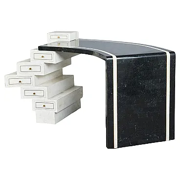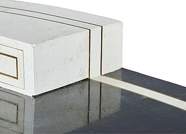 Scrivania unica con impiallacciatura in pietra bianca e nera e intarsi in ottone