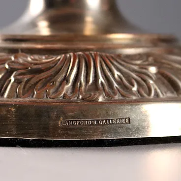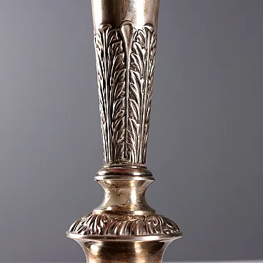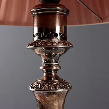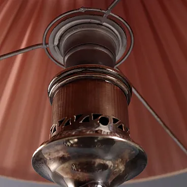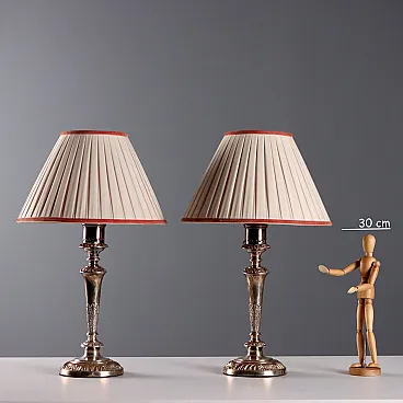 Coppia di lampade in metallo goffrato e paralume in tessuto, '800