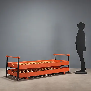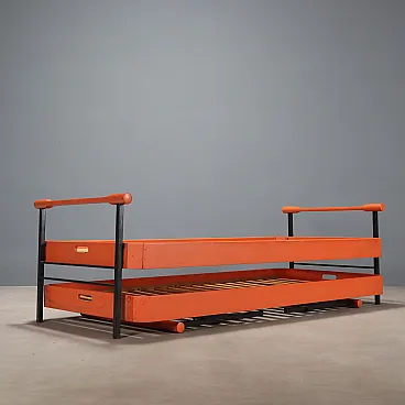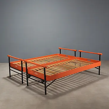 Coppia di letti in legno smaltato e metallo smaltato e cromato, '900