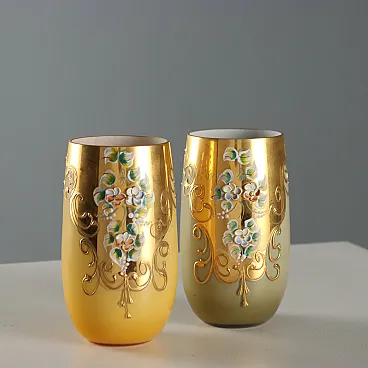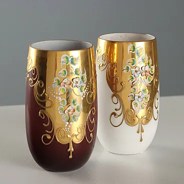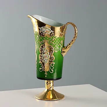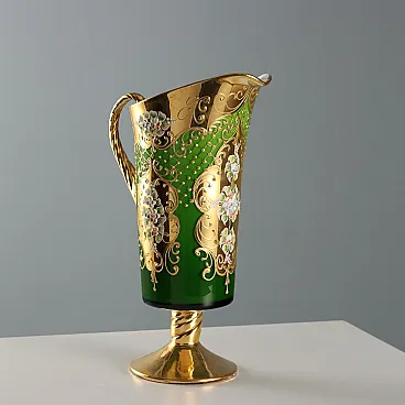 Brocca con 4 bicchieri in vetro policromo, '900
