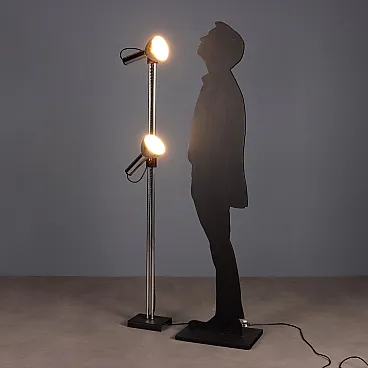 Lampada da terra con due punti luce in metallo laccato e cromato, '900