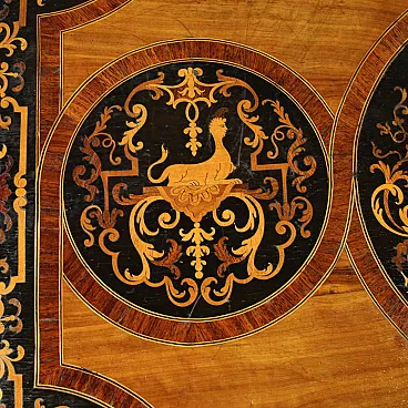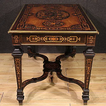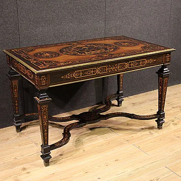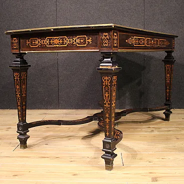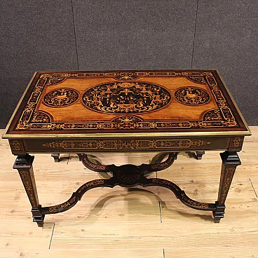 Tavolo scrittoio francese intarsiato in legni esotici, '900
