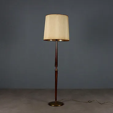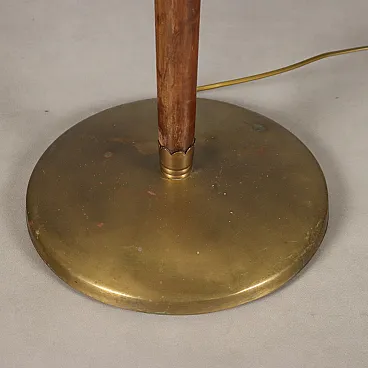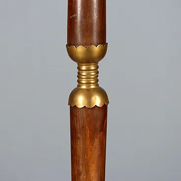 Lampada in legno tinto, ottone, tessuto/carta, '900