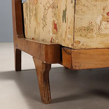 Divano letto in noce e tessuto con portariviste laterale, metà '900