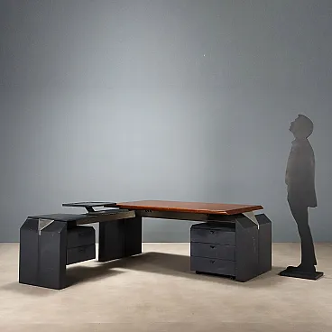 Scrivania con cassetti in noce e alluminio cromato, '900