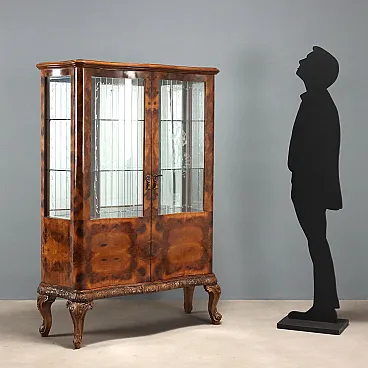 Vetrina impiallacciata in radica di noce, primo '900