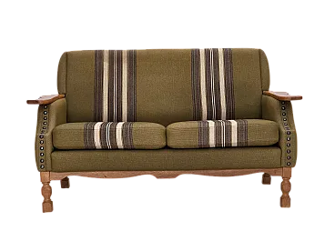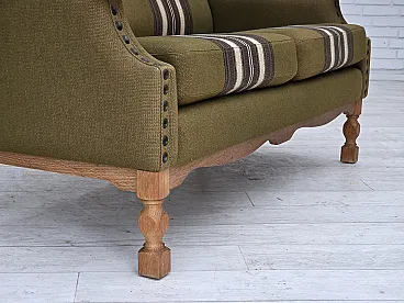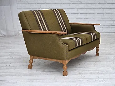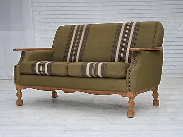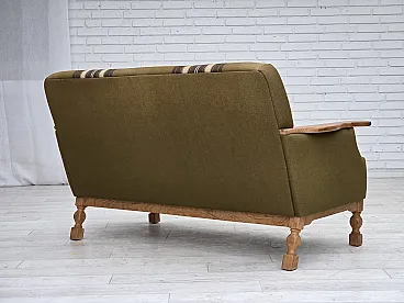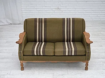 Divano danese a 2 posti lana verde quercia, anni '70