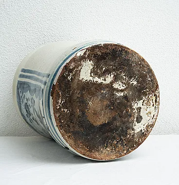 Descrizione: Albarello/Vaso antico in maiolica policroma smaltata di provenienza napoletana appartenente alla metà del XVIII secolo. Il vaso di grande dimensione ha una forma cilindrica rastremata al centro ed è decorato in monocromia blu cobalto tipico della tradizione napoletana. La parte centrale della decorazione raffigura una rovina architettonica in un paesaggio campestre. Condizioni: Ottimo stato. Provenienza: Napoli XVIII secolo. Misure: Diametro 20cm. Altezza 30cm. Documento: Certificato di Autenticità.