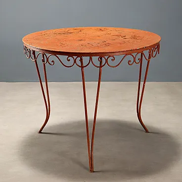Tavolo da giardino in ferro con piano rotondo, primo '900