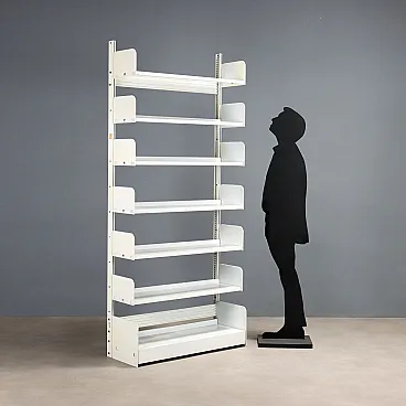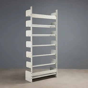 Scaffale in metallo laccato bianco con ripiani regolabili, '900