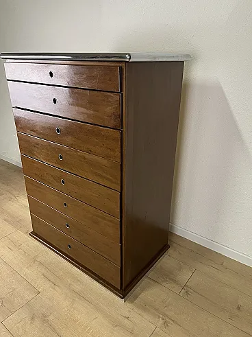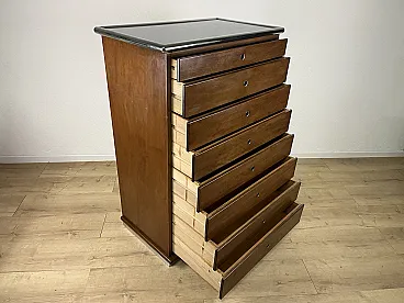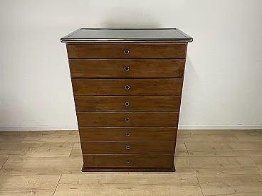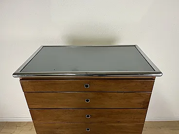 Cassettiera in legno, acciaio e vetro fumé, anni '60