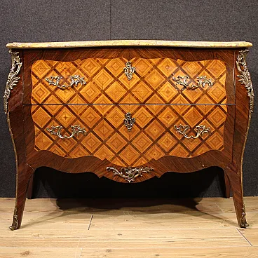 Comò francese intarsiato in stile Luigi XV, '900