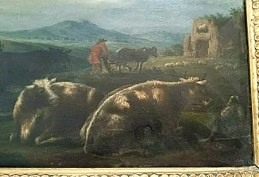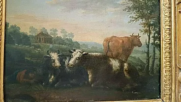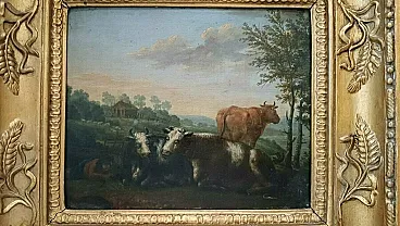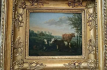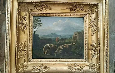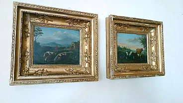 Paesaggi bucolici, coppia di dipinti olio su tavola, '700