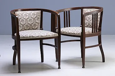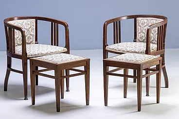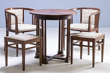 Tavolo in legno curvato con poltrone e sgabelli, anni '10