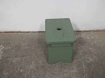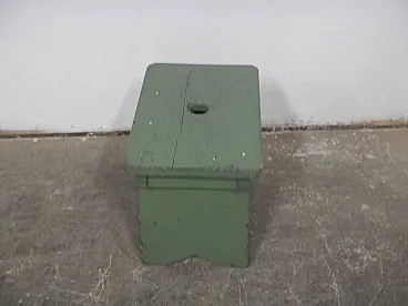 Piccolo sgabello di appoggio in legno di abete colorato verde Con apertura superiore per lo spostamento