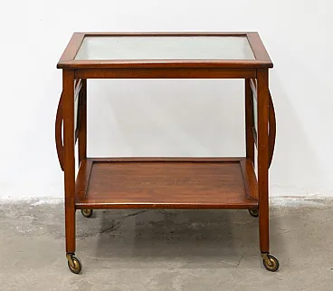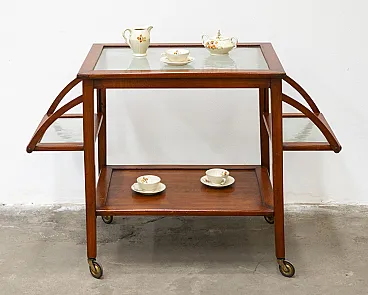 Carrello portavivande in legno di faggio massello, anni '50 1