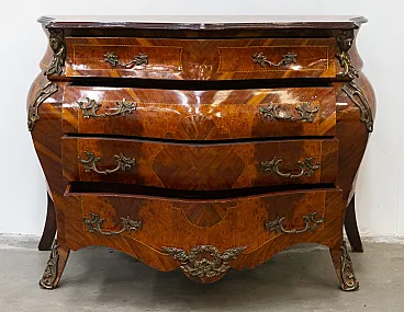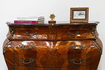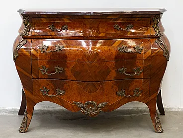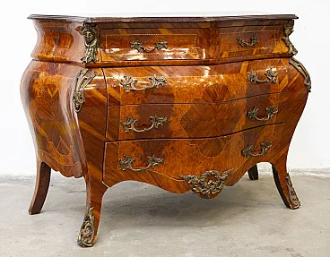 Comò Luigi XV con intarsi di varie essenze lignee, '900
