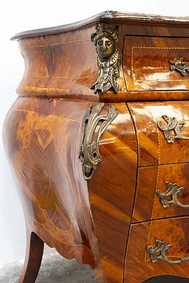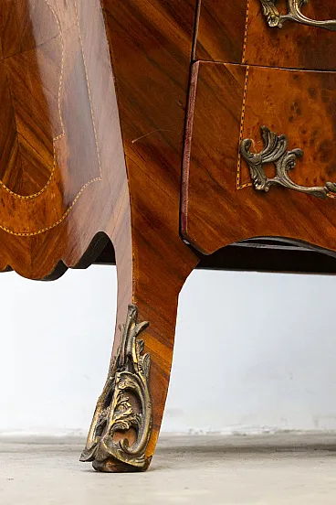 Comò Luigi XV con intarsi di varie essenze lignee, '900 4