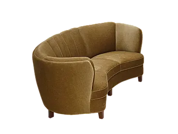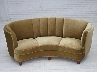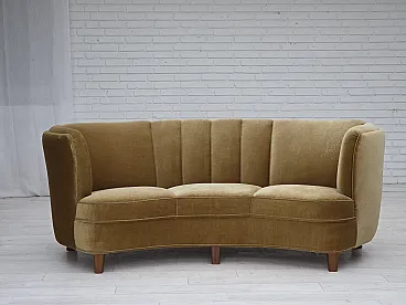 Divano danese "Banana" a 3 posti in velluto, anni '60