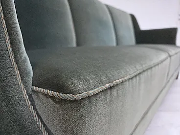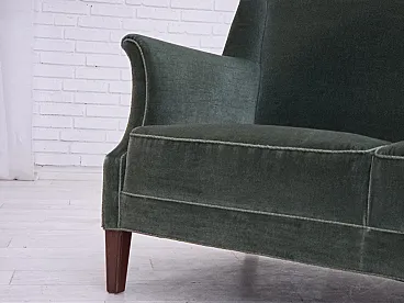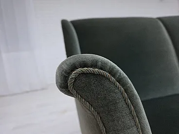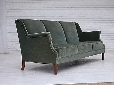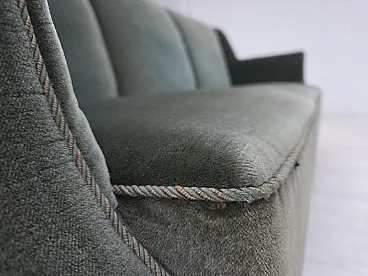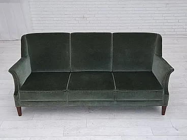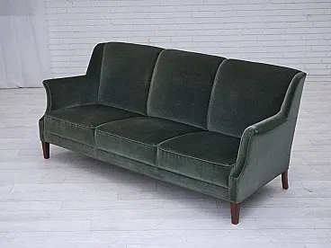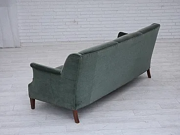 Divano danese a 3 posti in velluto verde-turchese, anni '60