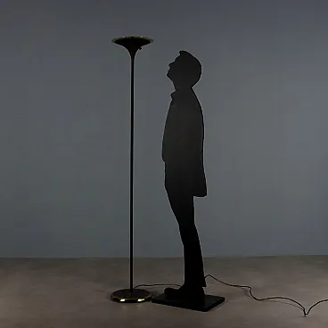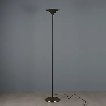 Lampada da terra in metallo smaltato con inserti in ottone, '900