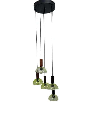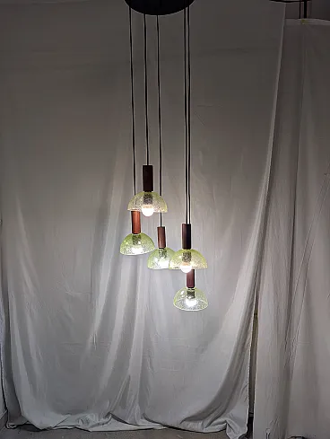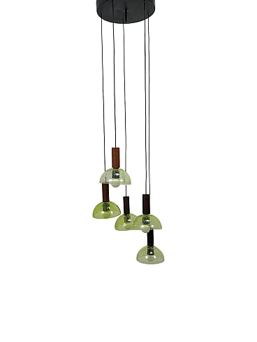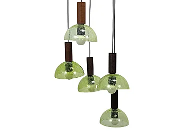 Lampada a sospensione in teak e vetro di Murano, anni '60