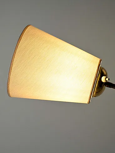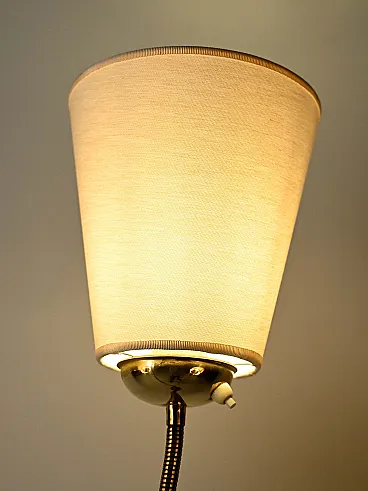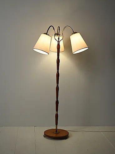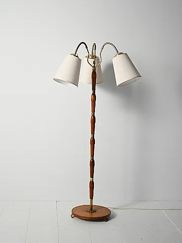 Lampada da terra scandinava a tre bracci in teak e ottone, anni '50