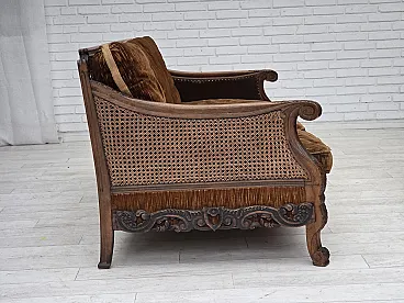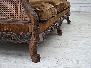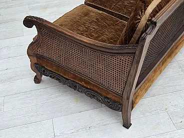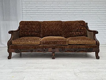 Divano danese a 3 posti in velluto e quercia, anni '40
