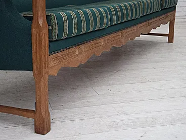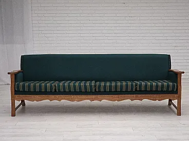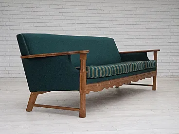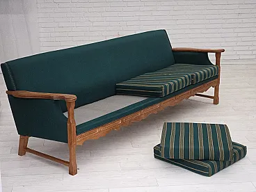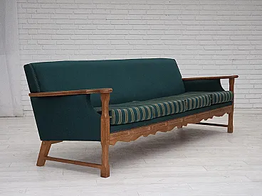 Divano danese a 4 posti in lana e rovere massiccio, anni '70