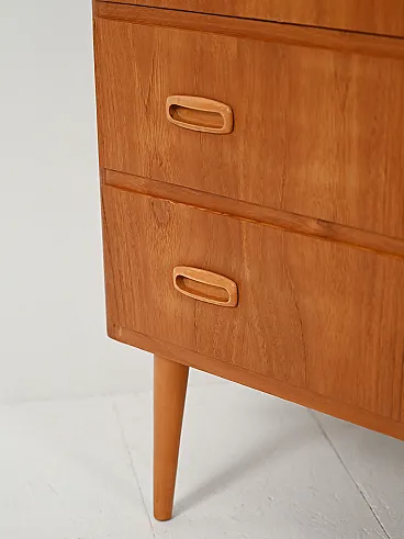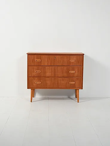 Cassettiera scandinava teak con doppie maniglie scolpite in rovere