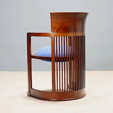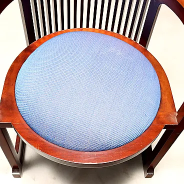 Coppia di poltrone in legno di ciliegio e tessuto blu, '900