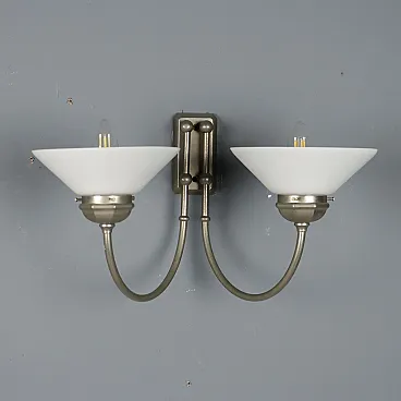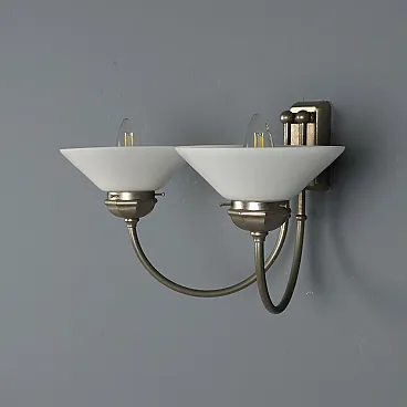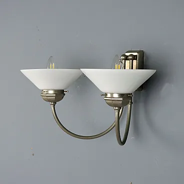 Lampada da parete con struttura in metallo e diffusori in vetro, '900