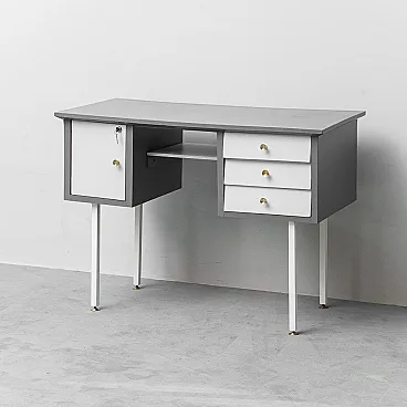 Scrivania in legno, metallo e ottone, anni '70