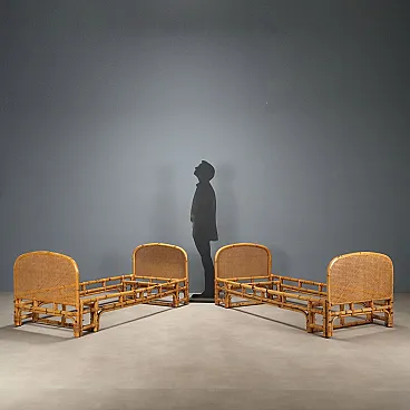 Coppia di letti in bambù e paglia di Vienna, '900