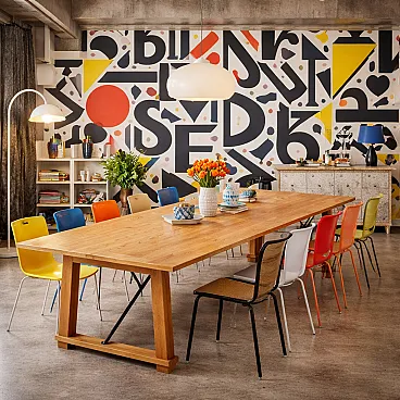 Tavolo in massello di rovere e metallo smaltato nero, '900