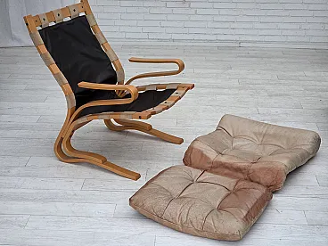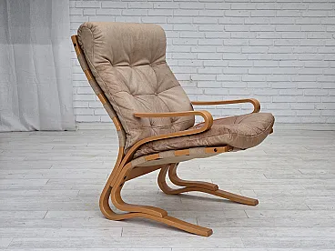 Poltrona norvegese, modello "Kengu", pelle beige, anni '70