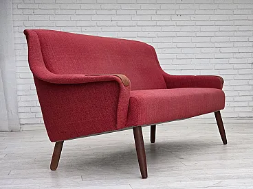 Divano danese a 2 posti, tessuto e teak, anni '70