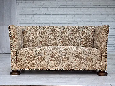 Divano danese a 2 posti beige/marrone e rovere, anni '50