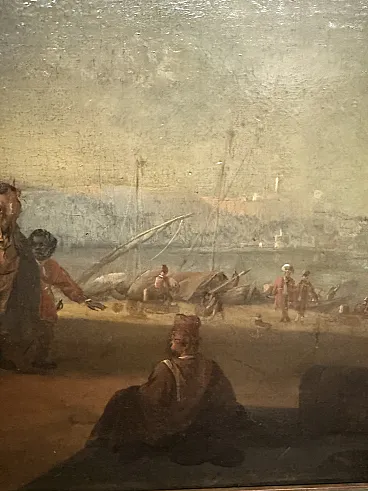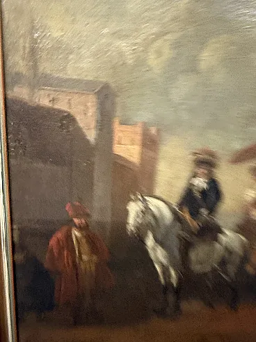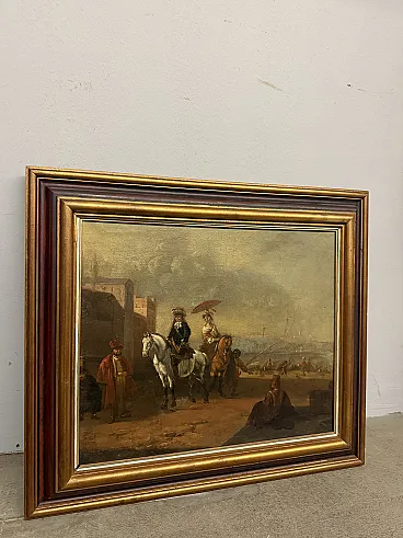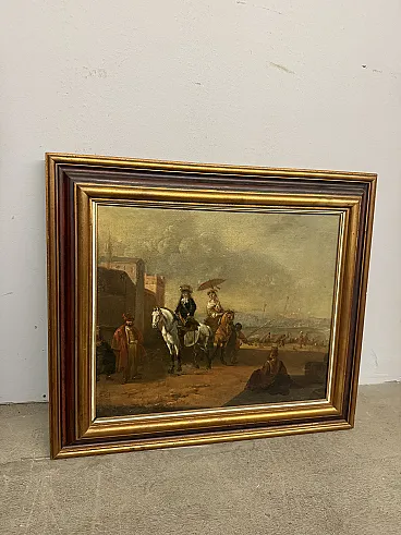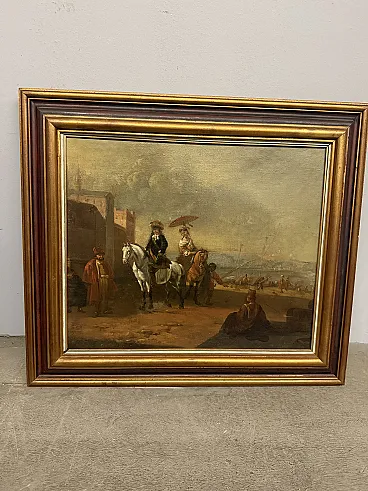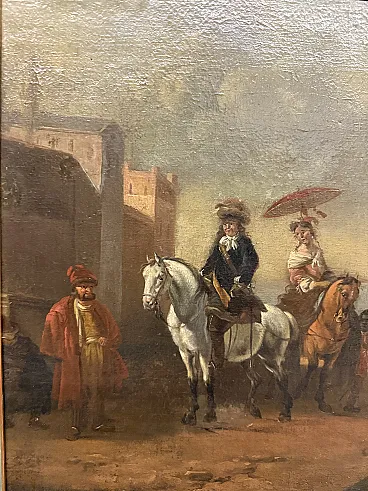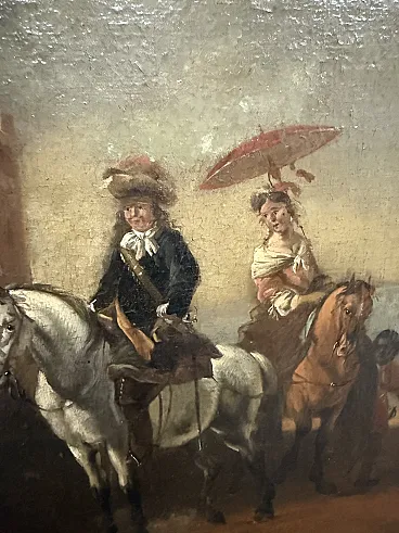 Dipinto olio su tela con cavaliere e dama, '700