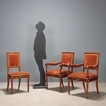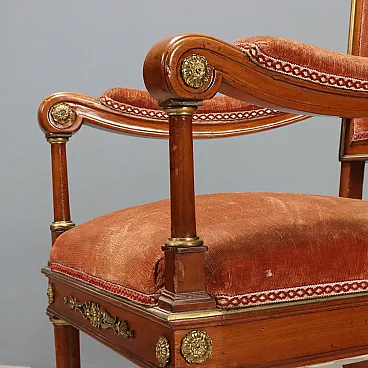 Coppia di poltrone e sedia in mogano, '900