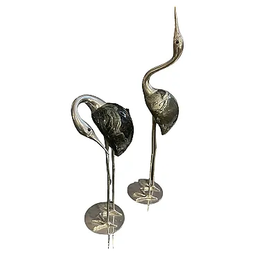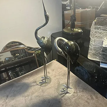 Coppia di sculture in argento di aironi di De Stijl Firenze, anni '60