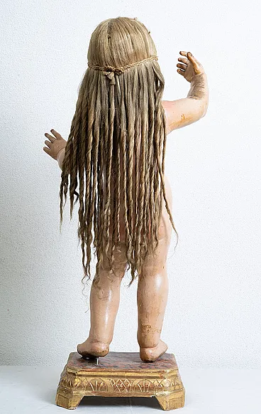 Scultura in legno policromo raffigurante bambino benedicente, '700